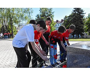 Все присутствующие приняли участие в церемонии возложения цветов к могиле неизвестного солдата и почтили память павших героев Великой Отечественной войны минутой молчания.